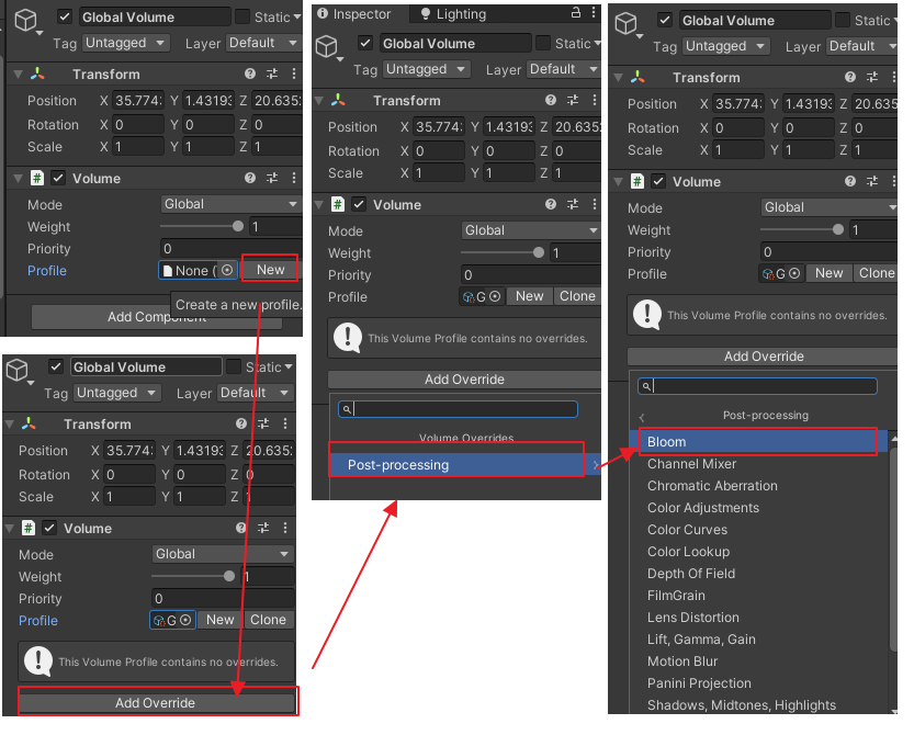이렇게해도 Post Process Volume 적용이 안되면.. Volume 새로 만들어서 적용해보기.